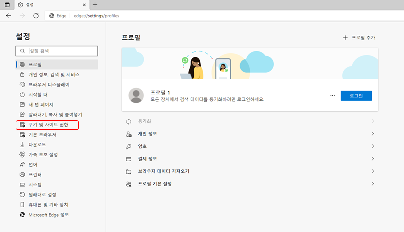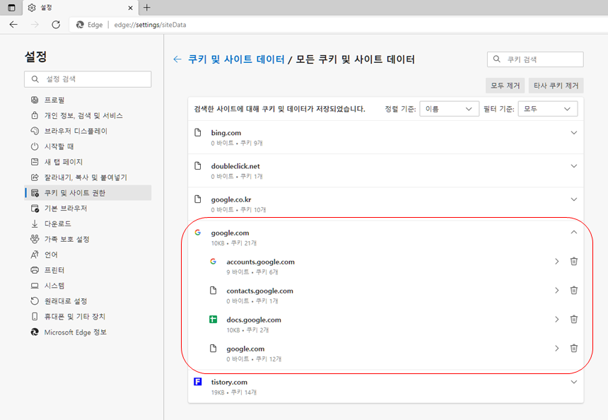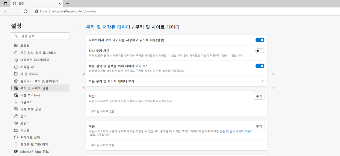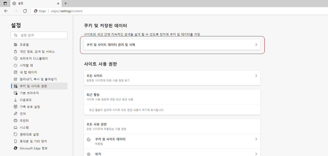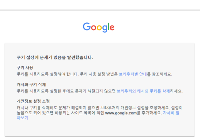 구글 링크 "클릭시 쿠키 설정에 문제가 있음을 발견했습니다." 해결방법(엣지 브라우저)