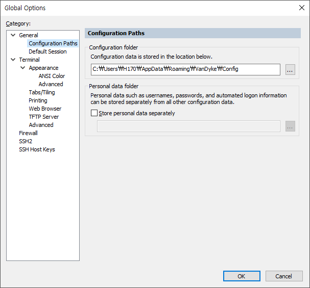 [Options] - [Global Options] - [General] - [Configuration folder]