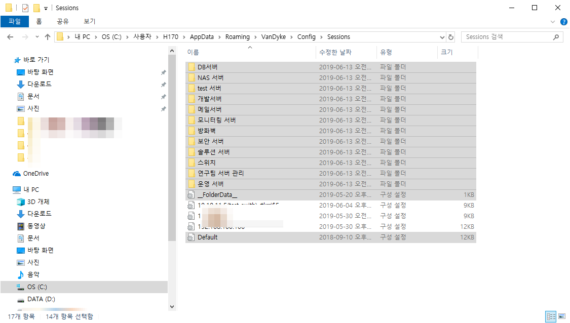 3. 위에서 확인한 경로로 들어가서 세션을 복사에서 신규 설치된 SecureCRT에 붙혀넣는다