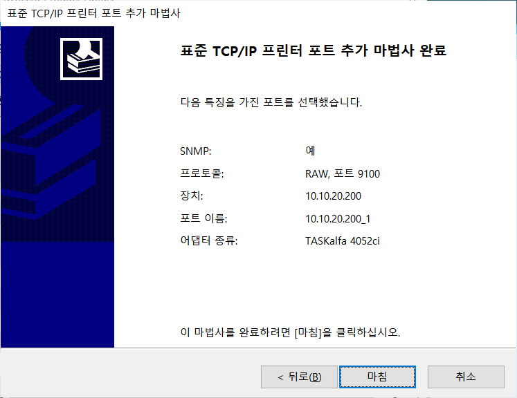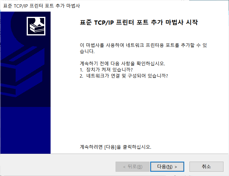 TIP. ping을 통해서 프린터가 네트워크 가 되는 환경인지 확인이 되어야 적용 가능하다.