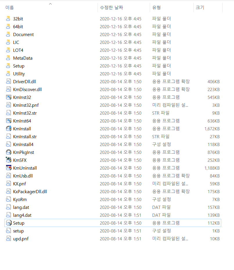 2. 다운로드를 받고 압축을 풀면 아래와 같은 폴더와 파일이 나오고 Setup 버튼을 누르고 설치를 진행한다.