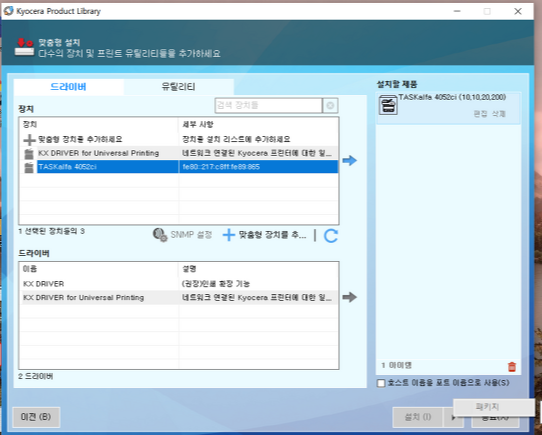 교세라 프린터 (TASKalfa 4052ci) 페키지 설정 방법.