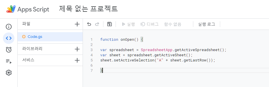 - 스크립트 편집기를 클릭하면 스크립트 편집기 화면에 새 탭에 열립니다.