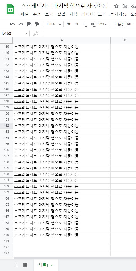 구글 스프레드시트 마지막 행으로 자동 이동 설정 방법